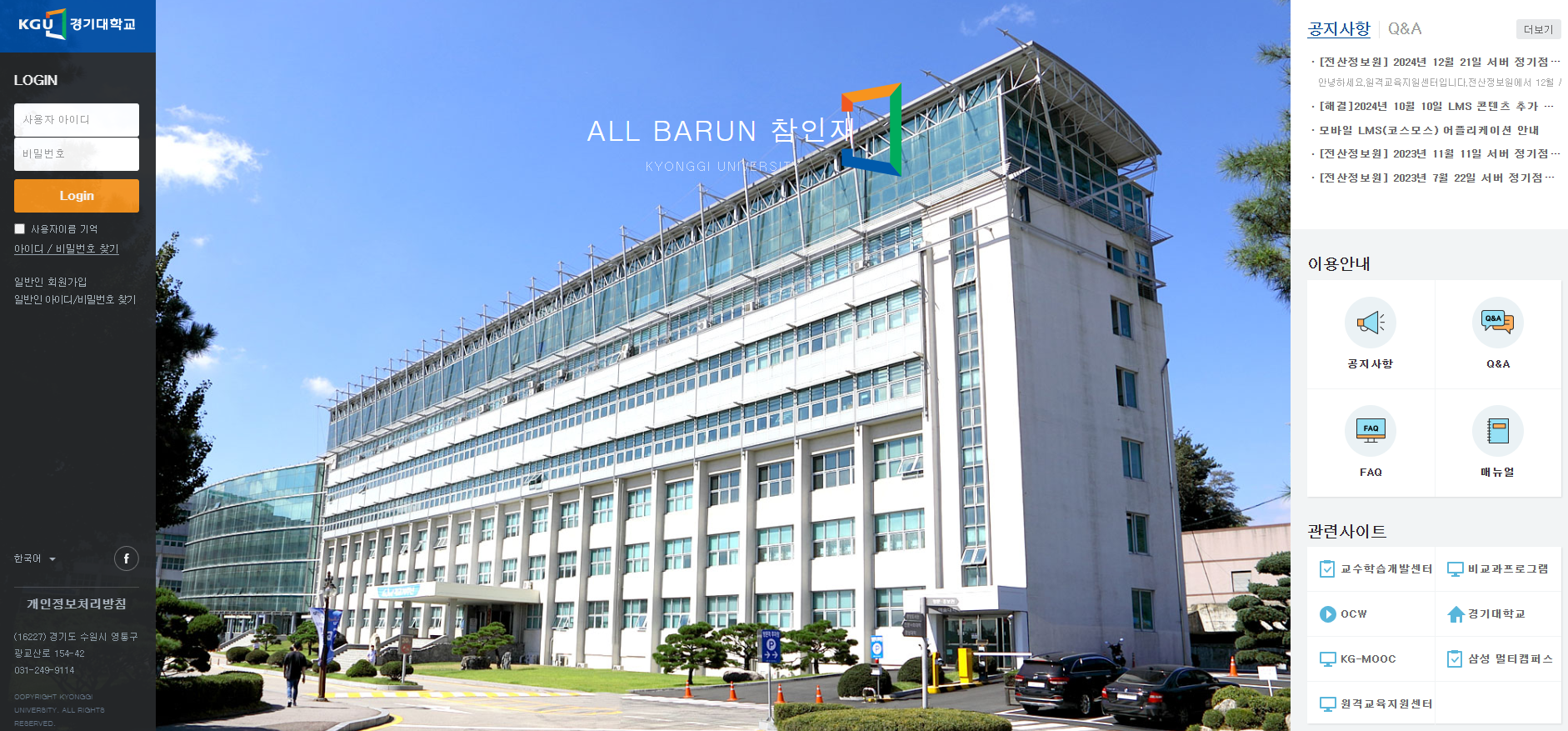 경기대학교에서 제공하는 공식 홈페이지 및 필수 사이트를 한곳에 정리했습니다. 학업 및 행정 업무를 볼 때 꼭 필요한 곳들이니 참고하세요.