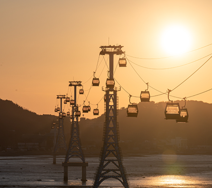 물 위를 떠다니는 기분을 느끼시려면 케이블카를 선셋권으로 구입하시고 5시 이후에 타시면 좋아요. 가격도 저렴하고 서해안의 저녁 노을을 제대로 느끼실 수 있어요.