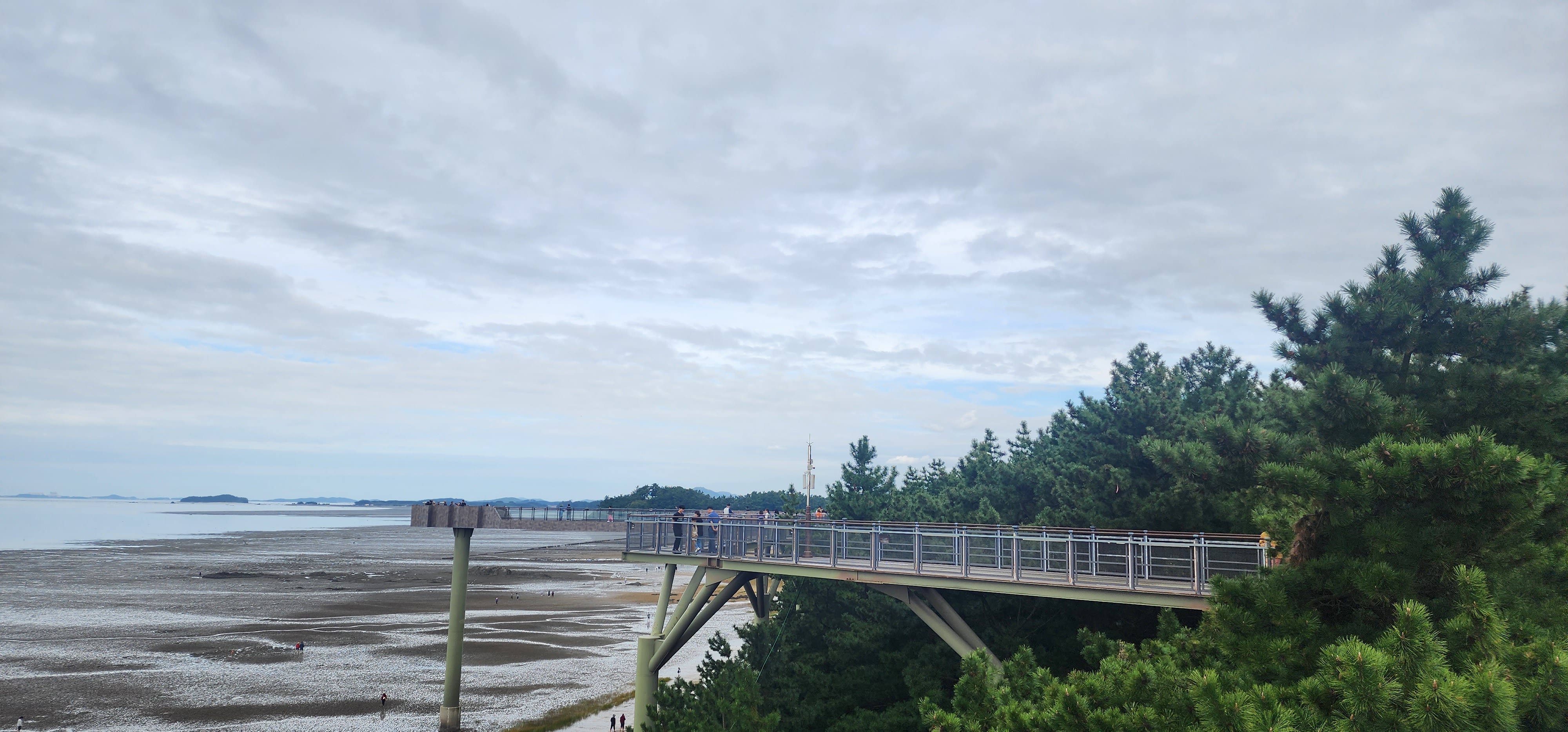 서천의 푸른 풍경 위로 웅장하게 솟아 있는 장항 스카이워크는 지역의 숨 막히는 자연의 아름다움을 파노라마처럼 볼 수 있는 독특한 경험을 선사합니다. 뚫린 스카이워크의 바닥을 밟으면 푸른 소나무 숲이 보이고, 옆으로는 해변과 바다가 넓게 펼쳐져 마치 허공을 걷는 듯한 짜릿한 경험을 하게 됩니다. 특히, 4월 맥문동 축제가 열리는 시기에 방문을 하게 되면 넓은 소나무밭 아래 핀 보라색 꽃이 잊지 못할 여행으로 만들어 줄 것입니다. 소나무 밭이 아주 넓어 많은 관광객이 와도 전혀 복잡하거나 사진 찍는데 어려움이 없다는 후문도 있습니다. 사진으로만 맥문동 꽃을 봤는데 너무 멋진 풍경이라 내년에 꼭 꽃 필 때 다시 와야겠다고 생각할 정도였습니다.