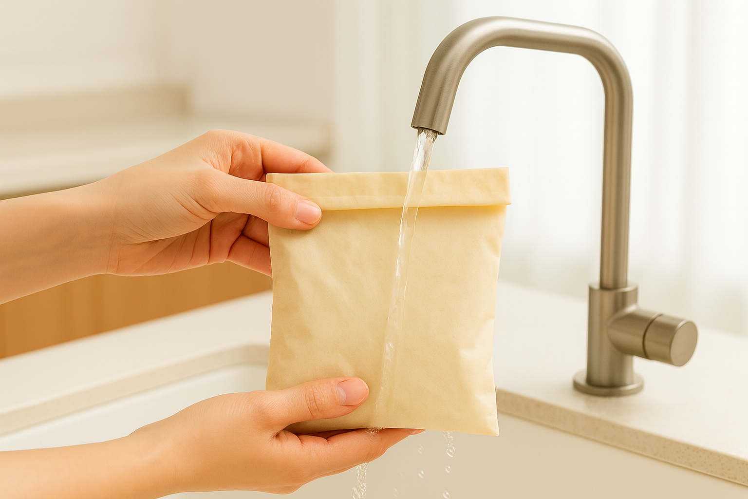 밀랍랩과 밀랍백은 열에 약해요. 뜨거운 물로 씻으면 밀랍이 녹아버리기 때문에 반드시 미온수나 찬물로 씻어야 해요. 🧊