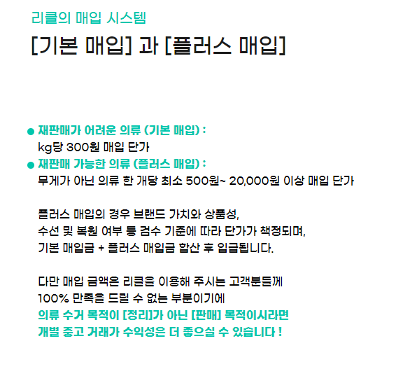 정산: 리클 센터에서 검수 후 매입 금액이 지급됩니다.